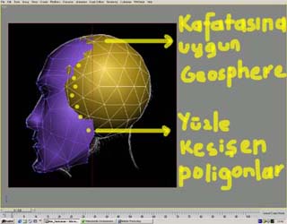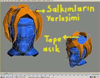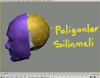 üst kısmını(kafanın üstü oluyor) Create komutu ile yeni poligonlar oluşturmak
