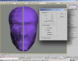 çevirelim. Oluşan POLY'e mirror uygulayıp copy yapalım ve Front penceresinden Yüzün