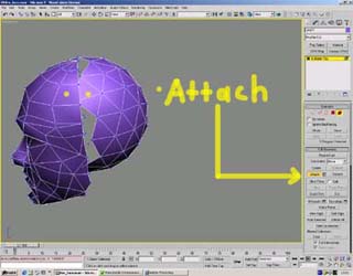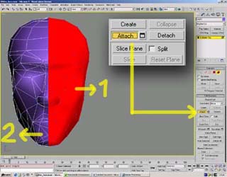 sağdaki Yüzü Element modunda seçim, Attach komutu ve ardından yüzün diğer