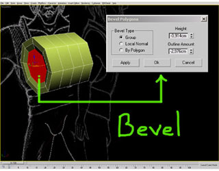 sekizgen poligonu seçip Edit Poligons panel alanından Pah kırma (Bevel) işlemini