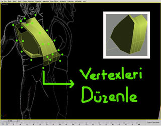 öyle yaptım ve göğüs kafesine ait Vertexleri yeleğin yaka kıvrımı vertexleriyle