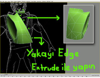 kısmı bitti. Front'da yeleğin yakası için önce Vertex'leri uygun yerlere koyarak