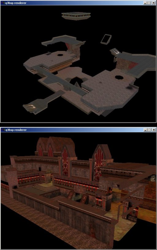 Günün Resmi Lib3d Q3BspRendererKişisel yardımcı sınıf kütüphanem Lib3d içine yeni fonksiyonellikler eklemeye devam ediyorum. Şimdilik bunlardan en göze batanı Quake3 haritalarını gösterebilen Q3BspRenderer sınıfı. Üstteki 2 ekran görüntüsünde bu sınıf kullanılarak render edilmiş orijinal q3 haritaları bulunuyor. Henüz collision desteği yok, üzerinde çalışıyorum. Zaten bu desteği ekler eklemez Lib3d 0.1.3 içinde yayınlayacağım.